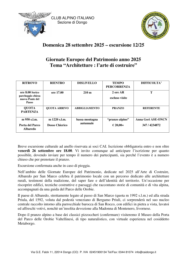 Breve escursione culturale ad Albaredo per San Marco nell’ambito delle Giornate Europee del Patrimonio
