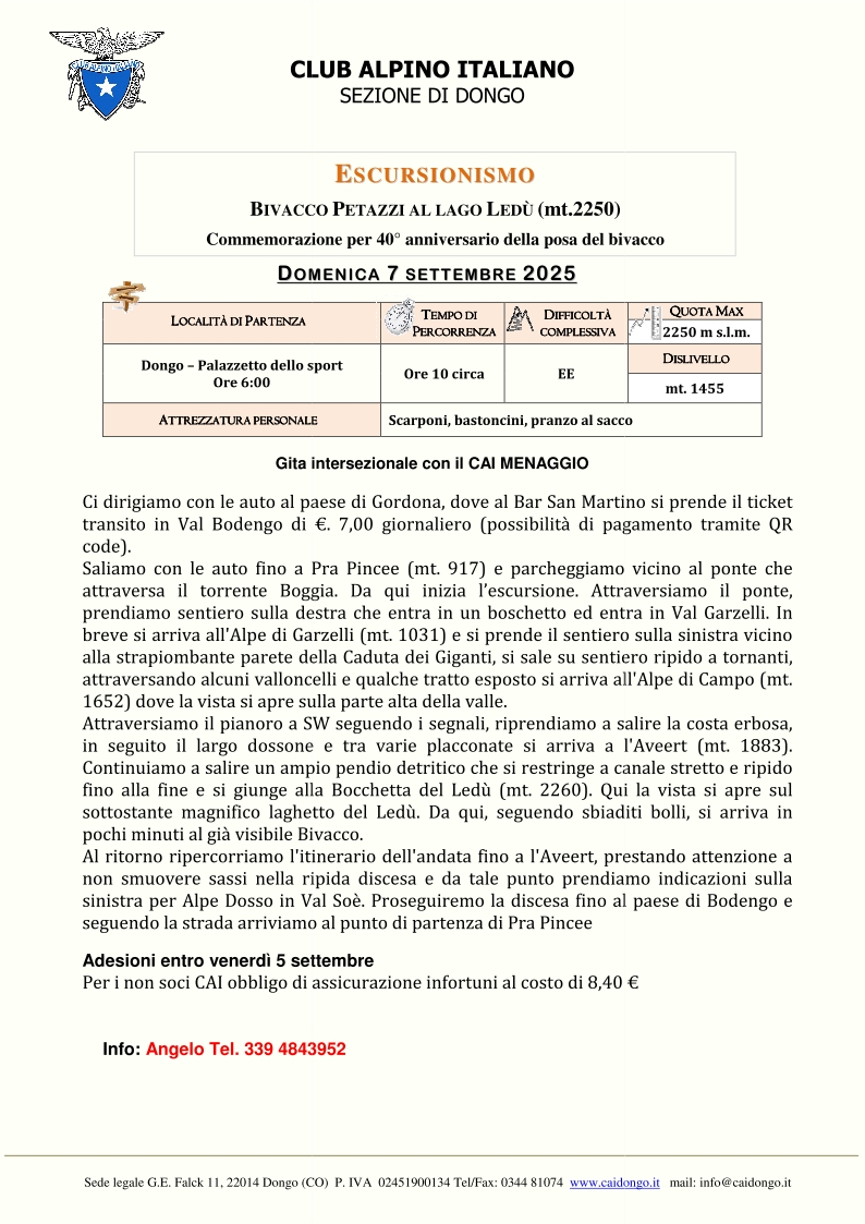 Ritrovo Dongo, Palazzetto dello Sport h 6:00