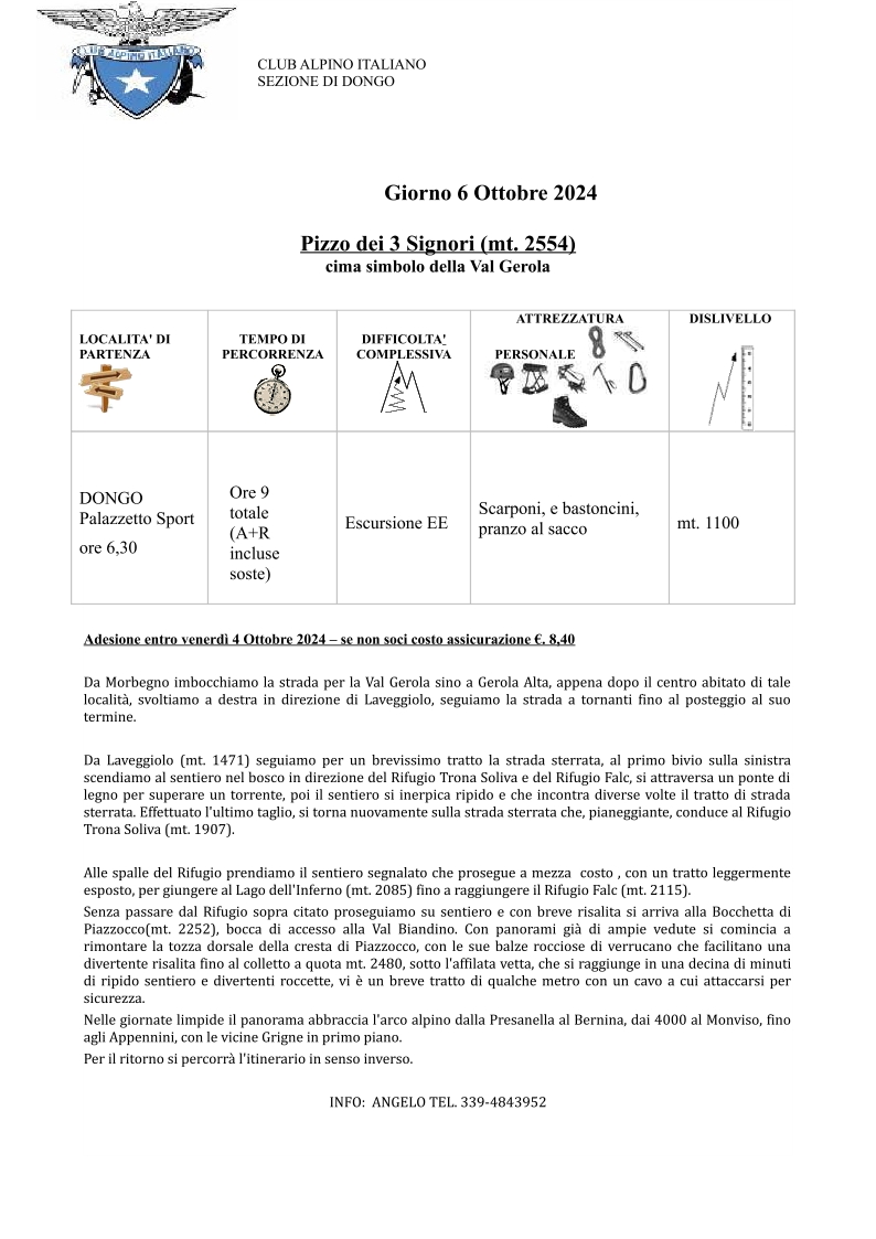 Ritrovo Dongo, Palazzetto dello sport h 6:30