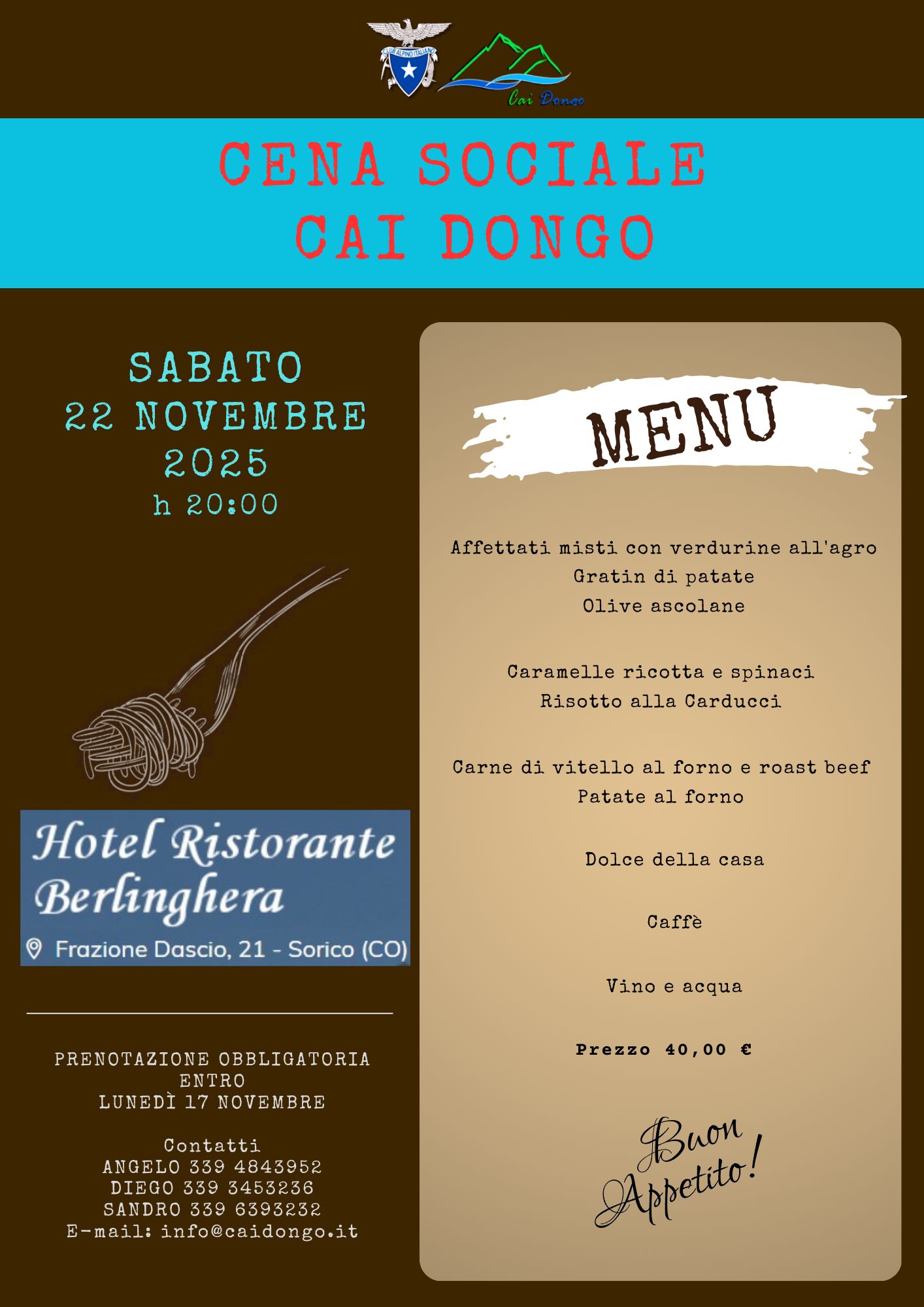 Invitiamo tutti i soci alla cena sociale di sabato 22 novembre ore 20:00 presso l’hotel ristorante Berlinghera a Dascio, frazione di Sorico