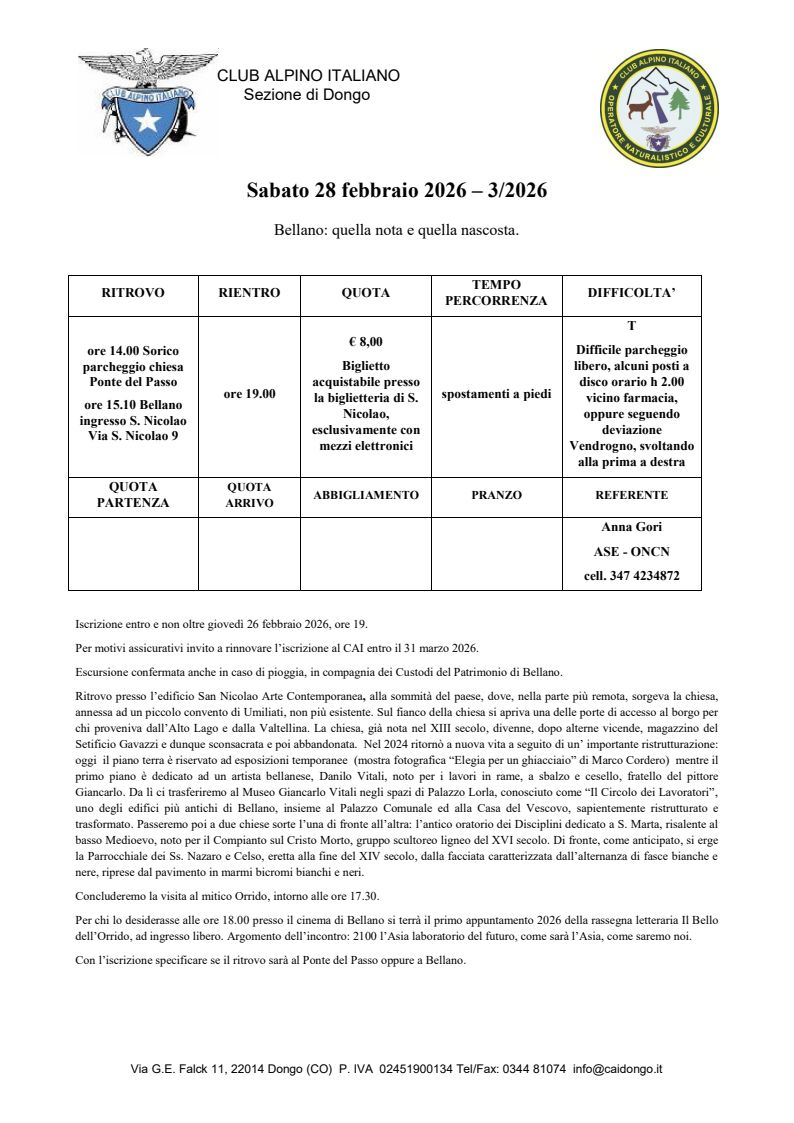 Ritrovo Sorico – Parcheggio chiesa ponte del Passo h 14:00