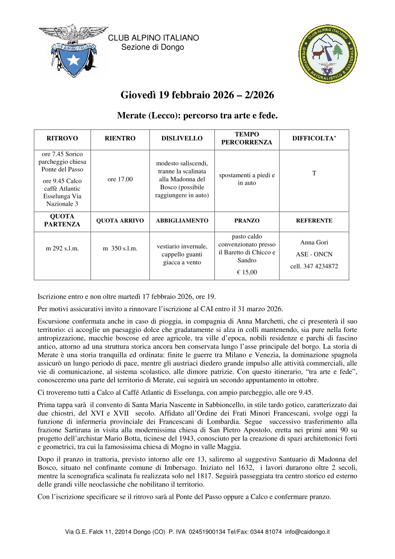 Sorico – Parcheggio chiesa ponte del Passo h 7:45
