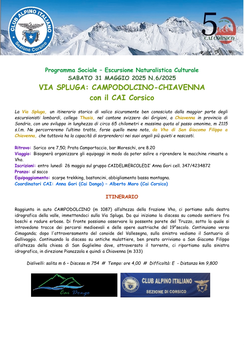 Ritrovo Sorico h 7:50 /Prata Camportaccio h 8:20