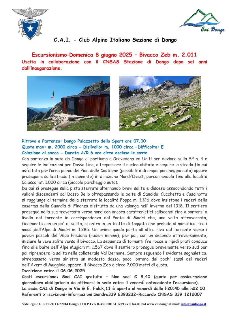 Escursione al Bivacco Zeb in collaborazione con il CNSAS Stazione di Dongo dopo sei anni dall’inaugurazione