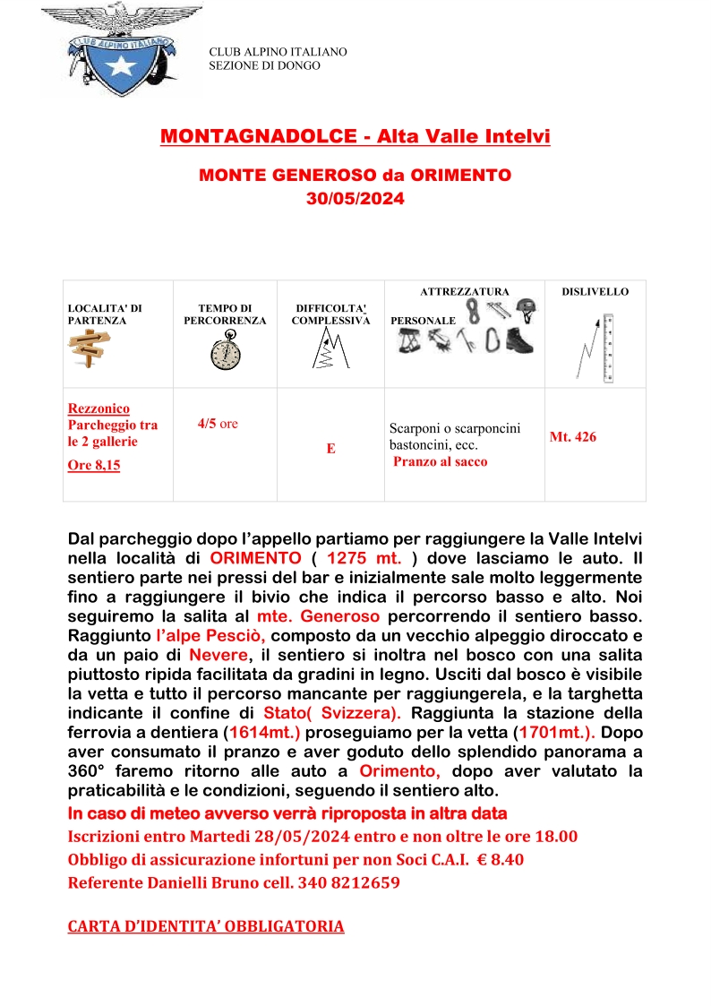 ATTIVITA’ RIMANDATA A GIOVEDI’ 13 GIUGNO 2024