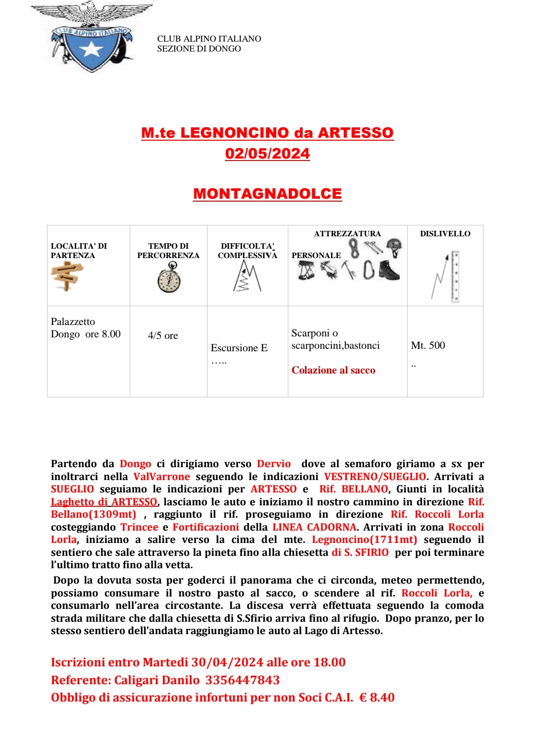 Tempo percorrenza 4-5h